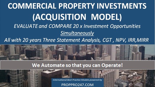 The Cap Rate method is used globally and incorrectly. A Cap Rate can only measure year 1 of Rental returns. Only NPV, IRR and MIRR can measure the returns generated over the term of the Investment with any gearing %. Our Systems automate the Cash Flow which is critical to calculating NPV, IRR and MIRR.